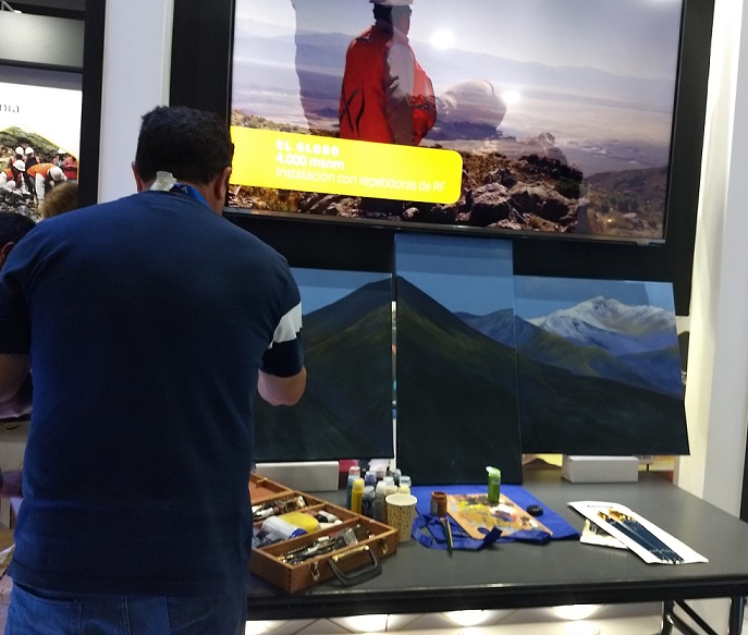 “Me invitaron a participar y estoy representando un poco lo que tenemos en Andalgalá. Esto es parte de una de las cadenas montañosas que nosotros tenemos frente a la ciudad que se llama Aconquija, y en uno de los sectores está precisamente ensamblado el Proyecto Agua Rica que está ahora en exploración”, precisó el artista andalgalense mientras coloreaba su obra.